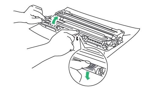 - Push down the lock lever and take the used tn210 toner out of the drum unit.