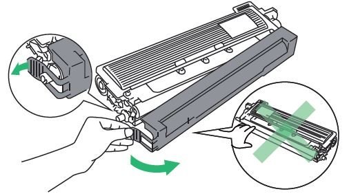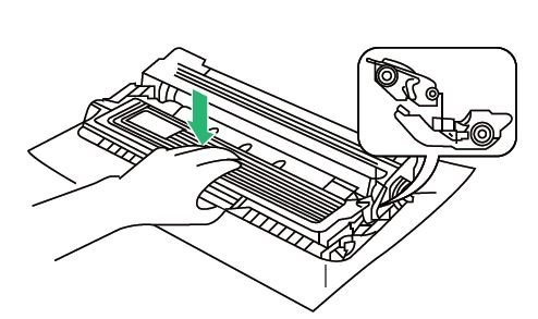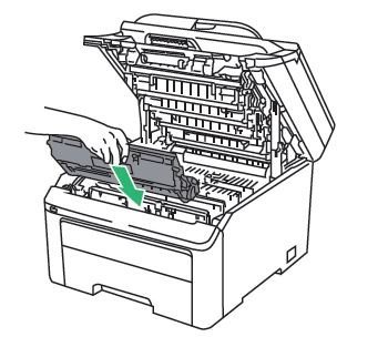 - Put the new tn210 cartridge firmly into the drum unit until it locks into the matching place.
